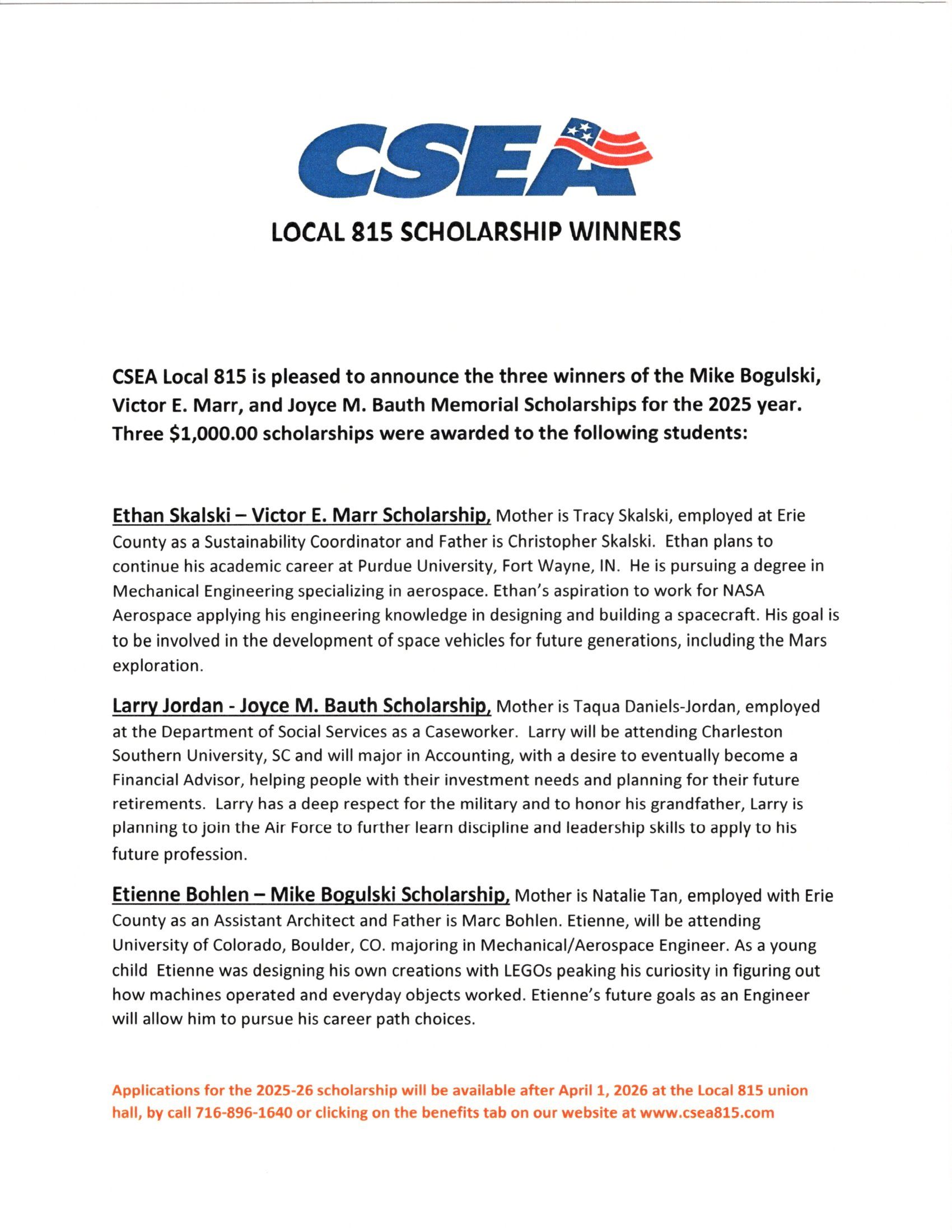 Congratulations Jada Ivey, Lucas Patronik, and Rachel Yager, winners of the Local 815 Scholarships. They were proudly awarded their certificates and checks at the luncheon ceremony on August 26, 2023.